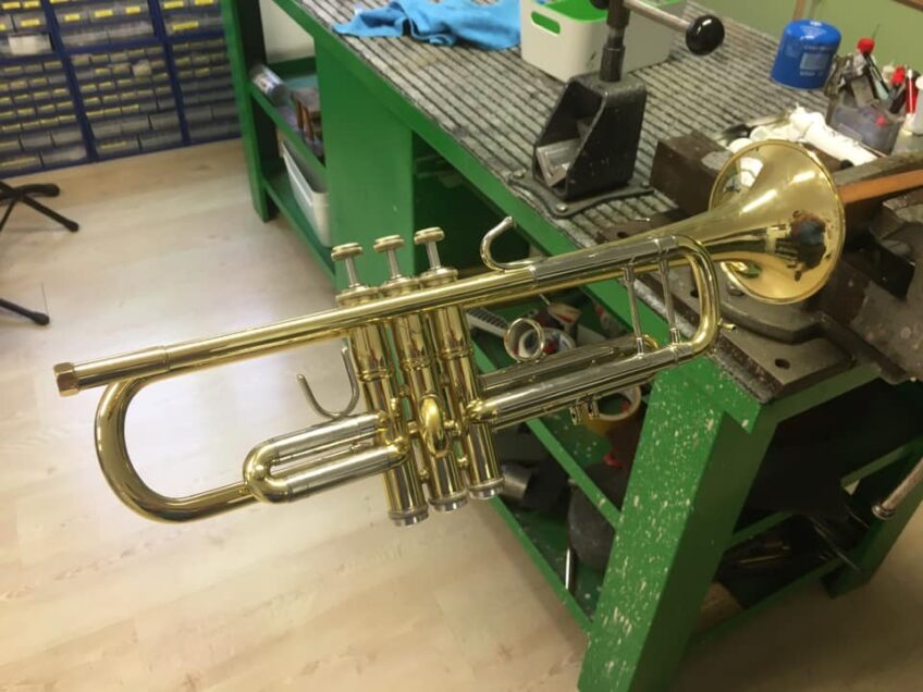 il lavoro è stato fatto modificando i braccini originali bach rendendoli svitabili così da poter mantenere il più possibile lo strumento originale ma con la possibilità di utilizzare diverse tipologie di campana.